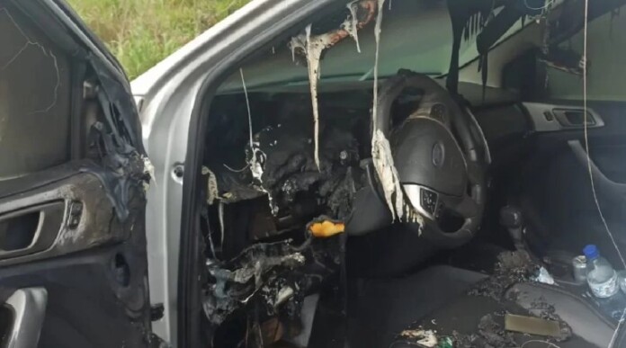 Nas imagens registradas é possível ver o painel do carro, do lado do motorista, completamente “derretido”. O para-brisas, por sua vez, está estilhaçado.