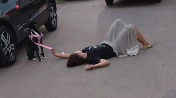 Após a queda, muitos populares se aproximaram para tentar ajudar a jovem, mas o cachorro que andava com ela, passou a atacar as pessoas em volta, provavelmente para proteger sua tutora.