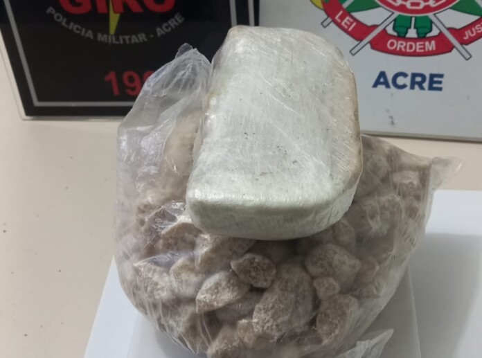 Guarnições da Polícia Militar do Acre (PMAC), durante serviço deste domingo, 5, apreendeu mais de um quilo de drogas e uma arma de fogo. As ocorrências se deram em bairros distintos de Rio Branco, onde duas pessoas foram presas e encaminhadas a Delegacia de Flagrantes (Defla).