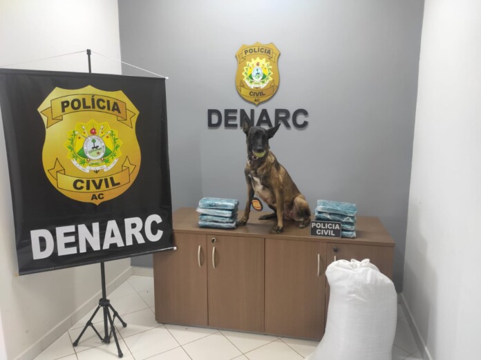 Agentes da Polícia Civil do Acre, por meio do Núcleo de Operações com Cães da Polícia Civil (NOC/AC) realizaram na manhã desta sexta-feira, 10, a apreensão de oito quilos e 600 gramas de maconha que estavam escondidos em um saco de farinha.