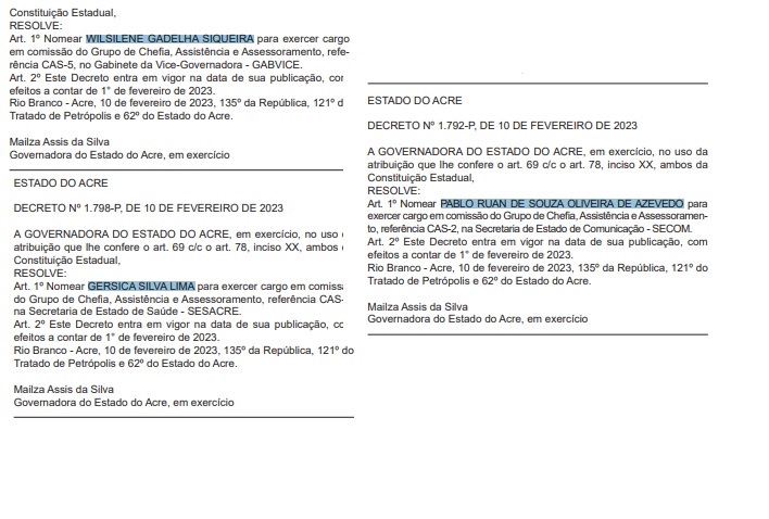 Para quem dizia que apenas Deda e Isaac tinham vez no governo de Gladson Cameli se enganou. Assumindo interinamente o governo do Acre, a vice governadora Mailsa Assis nomeou três manciolimenses em um único dia.