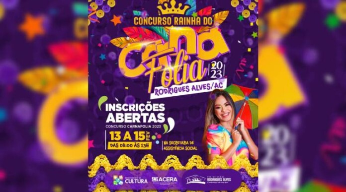 A prefeitura municipal de Rodrigues Alves, através do departamento de cultura, convida todas as garotas que queiram participar do concurso Rainha do Carnafolia 2023.