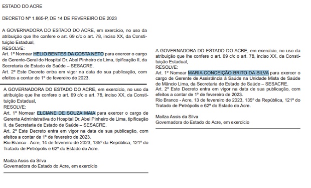A edição do Diário Oficial desta quarta-feira, 15, trouxe os nomes dos gestores da unidade hospitalar, mantendo a mesma equipe da gestão passada.