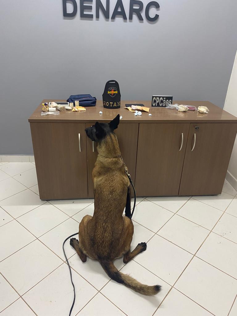 Com ajuda das cães policiais, Alpha e Helo, as guarnições do Batalhão de Operações Especiais (BOPE) e da Delegacia de Repreensão ao Narcotráfico (Denarc) conseguiram apreender aproximadamente meio quilo de cloridrato de cocaína e alguns insumos utilizados na comercialização.