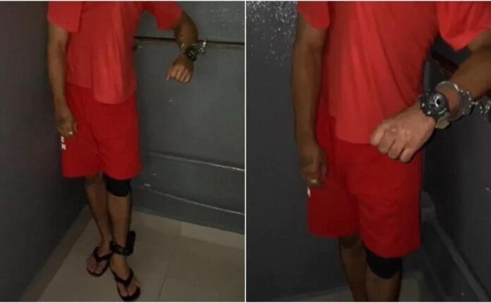 O que chamou atenção dos policiais foi que um deles usava uma roupa vermelha idêntica ao uniforme utilizado pelos presidiários do sistema prisional de Minas Gerais, além da “tornozeleira eletrônica” no pé esquerdo.