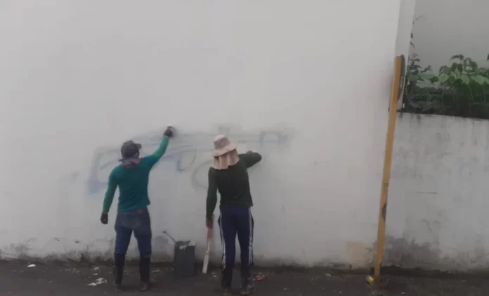 Na manhã desta quarta-feira (1), uma parceria entre Polícia Militar, Prefeitura e Polícia Penal foi firmada para o trabalho de limpeza de inscrições criminosas em Cruzeiro do Sul.