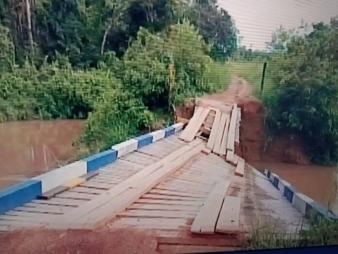 Bastou as chuvas chegarem com maior intensidade para que uma das cabeceiras da ponte desabasse cerca de dois metros dentro do leito do igarapé, impedindo a passagem de carros. Os moradores improvisaram uma passagem para pessoas, que somente em caso de extrema necessidade saem de casa e se arriscam a passar.