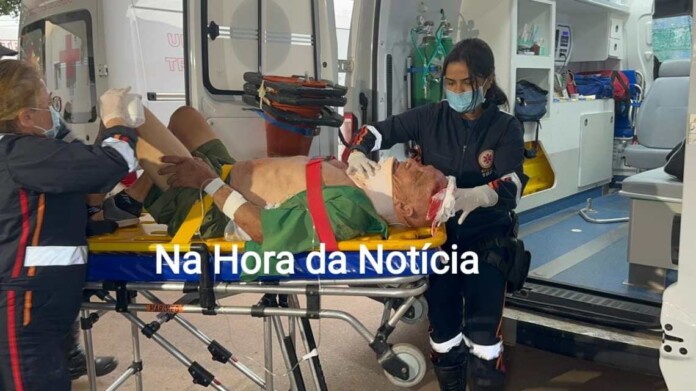 Na colisão, o idoso foi arremessado e bateu a cabeça violentamente contra o asfalto tendo um Traumatismo Craniano Encefálico (TCE) de natureza leve, uma fratura na perna direita e um corte na cabeça.