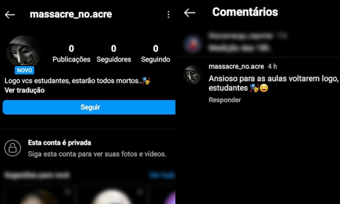 A Secretaria de Segurança Pública do Acre (Sejusp) investiga um áudio que passou a circular nas redes sociais sobre ameaças de atentados a escolas e creches no Brasil. No áudio, uma gravação afirma que jovens terroristas estão planejando um ataque à escolas e creches na semana do dia 20 de abril, data em que o Massacre de Columbine, nos Estados Unidos, e 15 estudantes foram mortos, completa 24 anos.