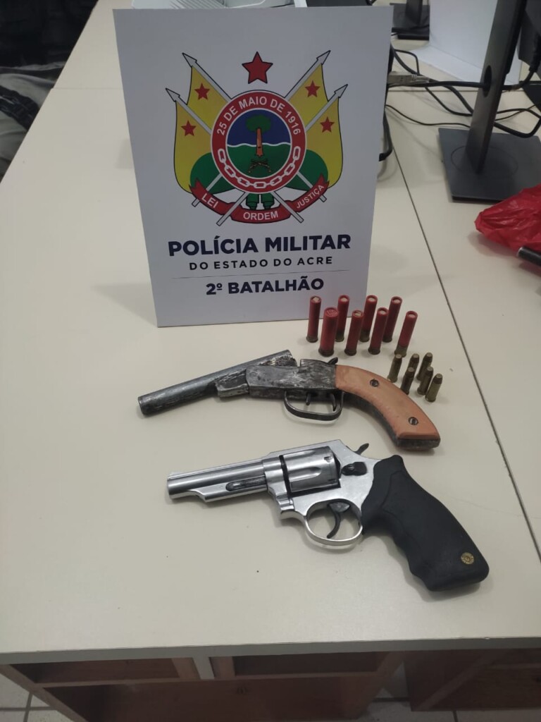 Os militares fizeram incursões a pé em diversos becos, até que seguiram o barulho dos fogos até uma casa abandonada, comumente utilizada como esconderijo para faccionados. Dentro do imóvel, as equipes encontraram várias caixas de fogos, drogas, e dentro de um quarto, os envolvidos, que portavam duas pistolas e um revólver de calibres diferentes, e mais de 30 munições.