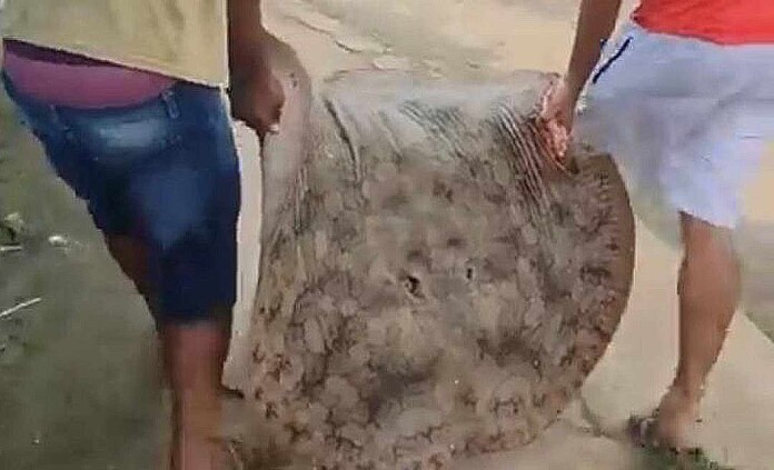 Populares compartilharam fotos e vídeos nas redes sociais. Outros pescadores relataram que já haviam visto arraias de tamanho similar, mas que é preciso ter muito cuidado ao pescá-las, já que elas possuem ferrões venenosos e podem ser perigosas.