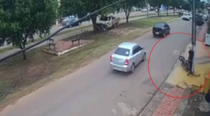 VÍDEO: câmeras flagram carro que jogou motociclista contra poste e fugiu sem prestar socorro no Acre