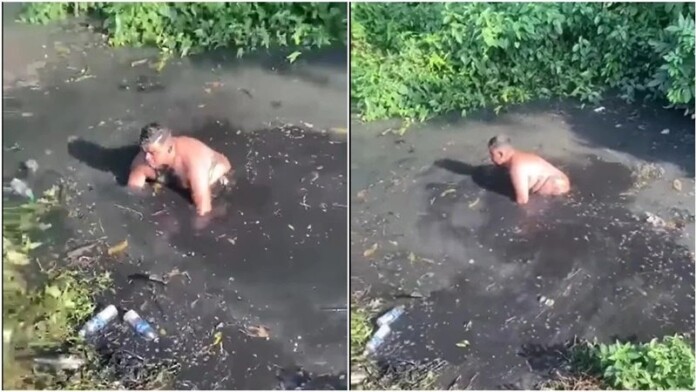 Imagens que viralizaram nas redes sociais mostram o rapaz procurando o aparelho com o corpo dentro do mangue. Ele chega a ficar com o corpo todo submerso, apenas com a cabeça para fora. Segundos depois, ele recupera o celular.