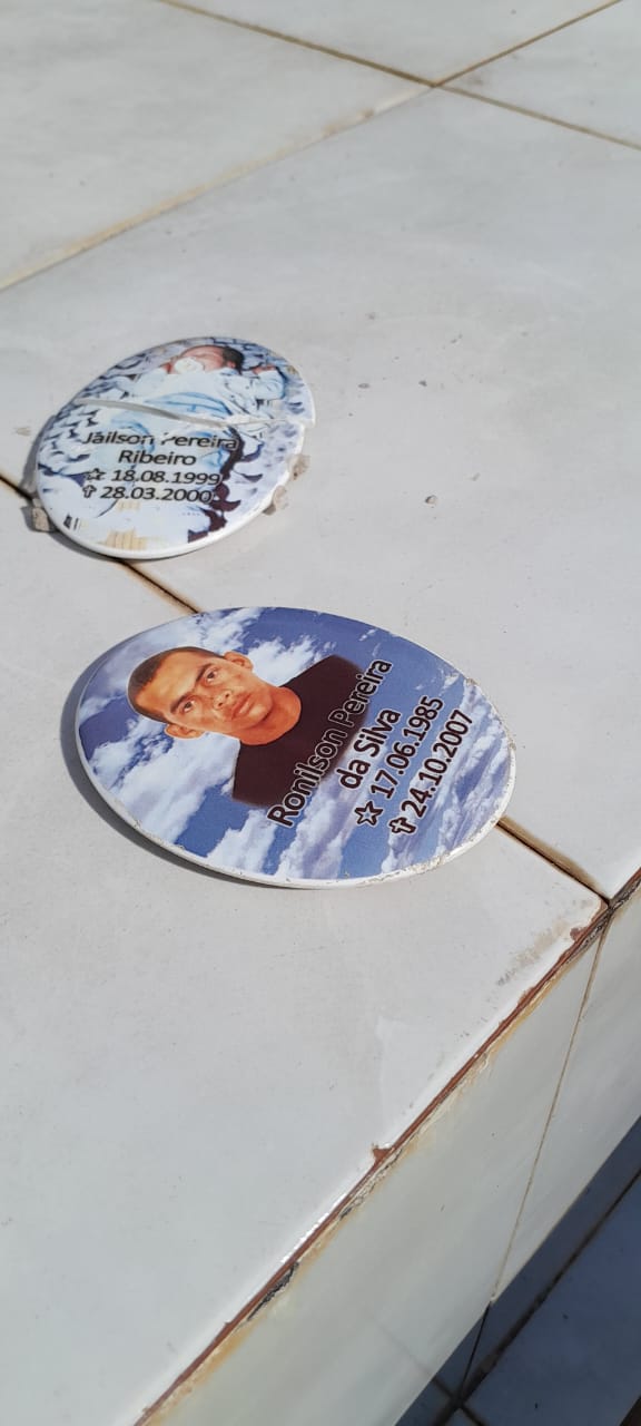 Não só o jazigo de sua mãe, mas os dos outros também estavam sem plaquinhas de bronze que a família mandam.