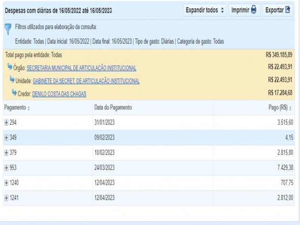 Só com o secretário municipal de articulação institucional a prefeitura gastou mais de R$ 17 mil nos primeiros 120 dias deste ano.