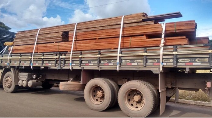 A Polícia Militar apreendeu um caminhão transportando madeira ilegal para uma madeireira em Cruzeiro do Sul, no Acre. Durante a abordagem, foi constatado que o motorista não possuía os documentos de origem da madeira.