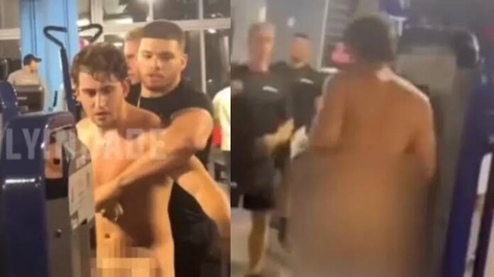 A cena inusitada foi gravada por testemunhas que estavam no local. Nas imagens o homem aparece tentando usar os equipamentos antes de tirar a roupa e começar a agredir as pessoas.