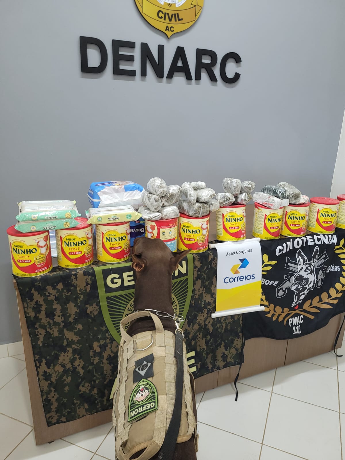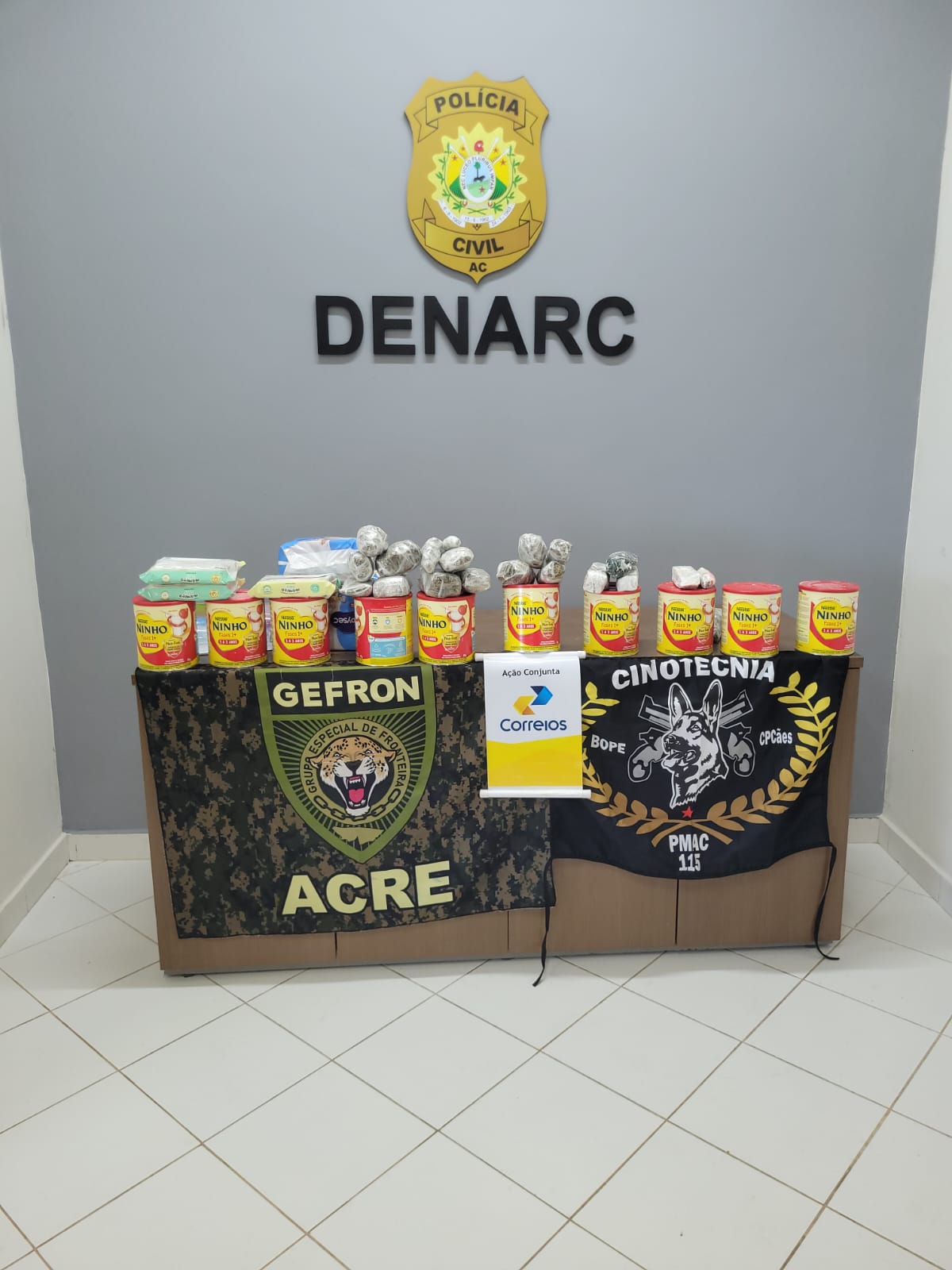O entorpecente encontrado estava sendo acondicionado em caixas de leite em pó Ninho, da Nestlé. Após a apreensão o material está sendo apresentado na sede Delegacia de Repressão ao Narcotráfico (DENARC), em Rio Branco.