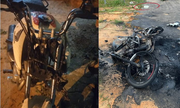 No final da tarde desta terça-feira, 23, um homem monitorado da justiça, por tornozeleira eletrônica, tocou fogo em duas motos em uma rua do Bairro Vila Rica. Segundo a Polícia Militar, uma moto foi totalmente queimada e a outra, de forma parcial. Ele não queria as motos na frente da casa dele, para não chamar a atenção da polícia, mas acabou preso.