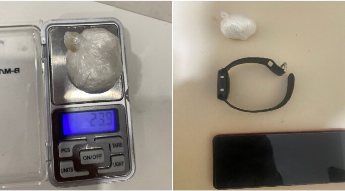 Diante dos fatos foi dado voz de prisão ao autor e encaminhado à Delegacia de Polícia Civil para os procedimentos cabíveis, juntamente com o entorpecente. Após chegar na DP o pacote foi pesado e deu o total de 23,9 gramas, cujo relato do conduzido é cocaína.