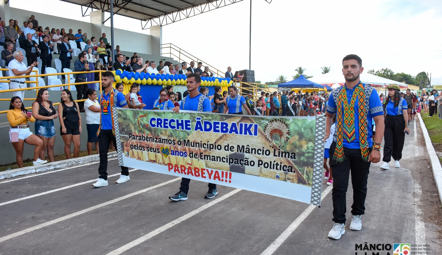 Um grande desfile cívico-militar encerrou as comemorações dos 46 anos de emancipação política de Mâncio Lima. Com o tema “Gente Aqui Nasce, Gente Aqui Chega e Gente Aqui Fica, Viva Nossa Terra!” centenas de pessoas se acomodaram nas arquibancadas para prestigiar militares, alunos, professores e funcionários públicos que contaram um pouco da história desta jovem e pujante cidade. O evento contou com a presença do governador Gladson Cameli.