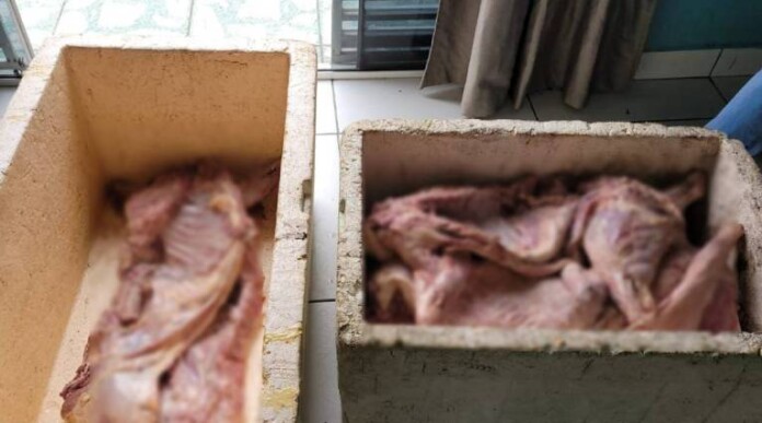 Na manhã desta quarta-feira, 7, a Polícia Civil de Cruzeiro do Sul estava dando continuidade nas buscas dos criminosos que estavam furtando na cidade quando, no bairro do Miritizal, um dos suspeitos identificados foi preso em flagrante com 200 kg de carne de caça, além de munições e o celular do alvo.