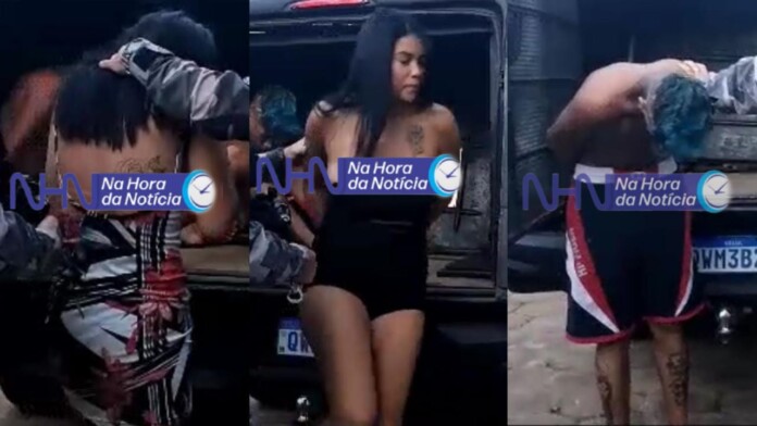 A monitorada por tornozeleira eletrônica Talita Souza da Silva, 19 anos, e Oséias do Nascimento Castro, 23, e Aline de Lima Cruz, 21, foram presos acusados de tráfico de drogas, na noite deste domingo (18), na rua Alvorada, no bairro Vitória, na região da parte alta de Rio Branco.