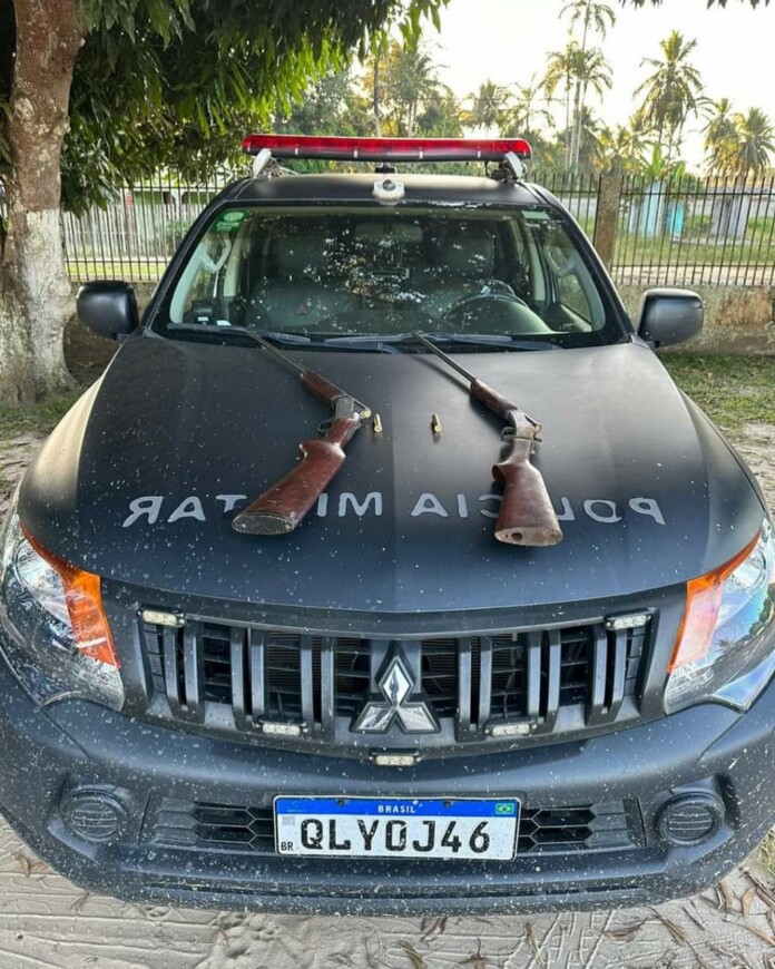 Após buscas na área, os policiais militares encontraram duas espingardas: uma de calibre 36 e outra de calibre 32. Além disso, foram localizados quatro cartuchos, sendo três deles deflagrados e um intacto.