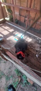 No local a Polícia encontrou outro animal em condições de maus-tratos, sendo este de pelagem preta, e estava preso em um ambiente fechado e também com o focinho amarrado.