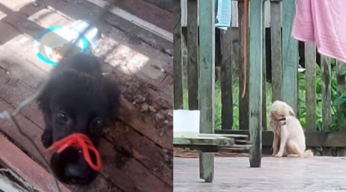 Após tomar conhecimento da denúncia de maus-tratos contra animal doméstico, o delegado de polícia e coordenador da região do Alto Acre, Erick Ferreira Maciel, se dirigiu ao local para averiguar a situação e encontrou um filhote de cão de pelagem branca com focinho amarrado e preso a uma corrente sem coleira.