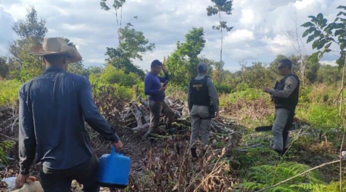 No local foram encontrados um motosserra, um galão de 5 litros de gasolina temperada e um galão de 5 litros de óleo queimado. Diante dos crimes ambientais, foi dada voz de prisão aos autores, que foram conduzidos e entregues na Delegacia de Polícia Civil juntamente com o material apreendido.