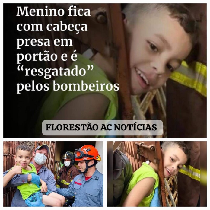 Fotos compartilhadas nas redes sociais mostraram o menino preso após colocar a cabeça bem abaixo do ferrolho do portão. Pelo menos seis bombeiros trabalharam no resgate da criança, que ficou tranquila e até sorriu.