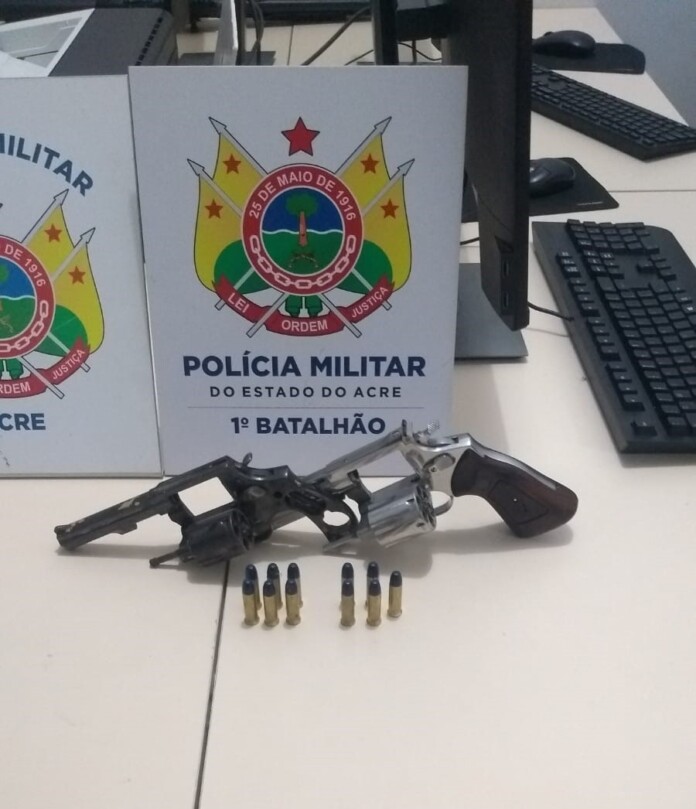 Equipes do 1º Batalhão da Polícia Militar do Acre (1º BPM/PMAC) apreenderam duas armas de fogo após uma tentativa de roubo ocorrida na madrugada desta quinta-feira, 29, no bairro Cadeia Velha, em Rio Branco.