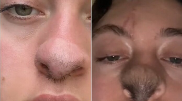 O tecido utilizado no enxerto foi retirado de uma região entre a testa e couro cabeludo. Por essa razão, após alguns dias, a enfermeira passou a notar o crescimento de cabelo no nariz e começou a mostrar a incômoda situação em seus vídeos.