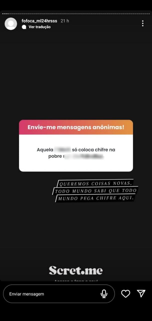 Dois perfis intitulados: “fofocas_ml24hrsss” e “boas fofocas 2023”, estão invadindo a privacidade e expondo a vida íntima de várias pessoas. As vítimas chegam a ameaçar fazerem um B-0 na delegacia, porém os (adms) que gerência as contas, respondem com ironia e sarcasmo, demostrando total confiança na impunidade.