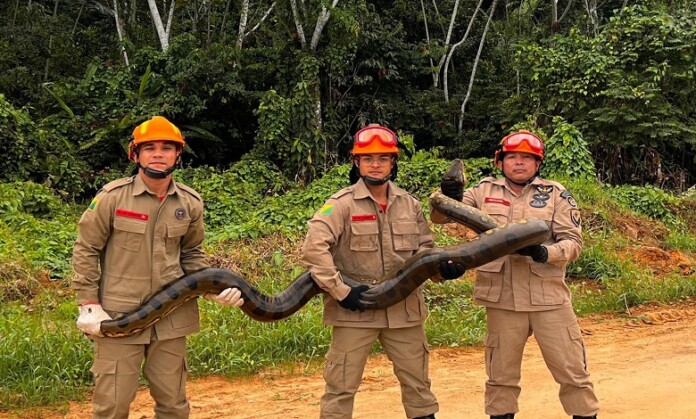 VÍDEO: em Cruzeiro do Sul, Bombeiros resgatam sucuri de proximamente 5 metros