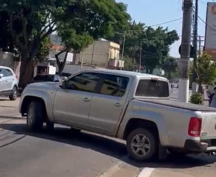Ao sair da prefeitura pela Getúlio Vargas, ao invés de seguir pela mão correta, o carro com o prefeito e seguiu na contramão.