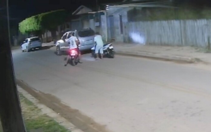 Dois criminosos foram flagrados furtando uma moto na noite de sábado (22), no bairro Ferreira Silva, em Brasileia, no interior do Acre.