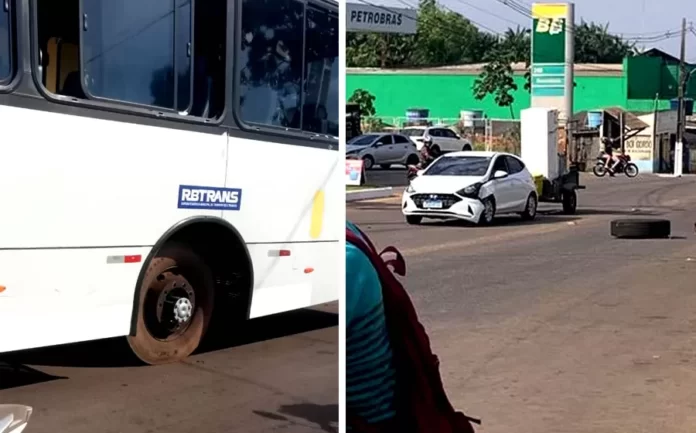 Pneu de ônibus solta e acaba acertando veículo no Acre