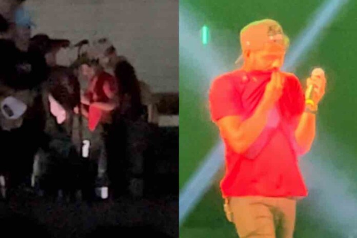 No entanto, enquanto se aproximava do final do show, uma fã invadiu o palco e tentou abraçar o cantor. Infelizmente, Evoney Fernandes acabou se machucando com um corte na boca.