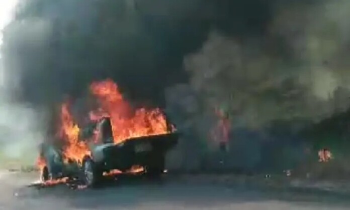 VÍDEO: em Cruzeiro do Sul, caminhonete da Secretaria de Educação é destruída por fogo