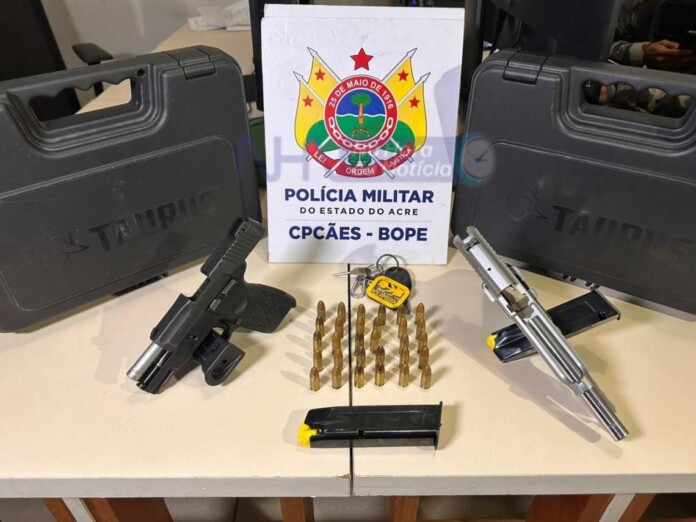 O monitorado por tornozeleira eletrônica, Eduardo Pereira, foi preso após trocar tiros com membros de uma facção na noite desta quinta-feira (17) na Rua Peru, no bairro Baixada da Habitasa, em Rio Branco.