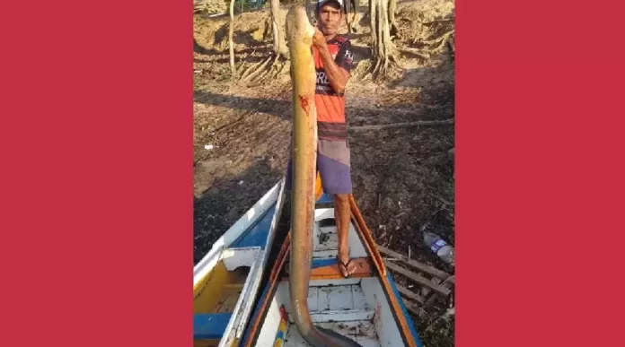Devido à natureza elétrica do Puraquê, que pode gerar descargas elétricas, os pescadores optaram por abater o peixe, que media cerca de 2 metros e pesava 50 quilos. Essa espécie, comum nos rios locais, é conhecida por sua habilidade de produzir eletricidade para se comunicar e capturar presas.
