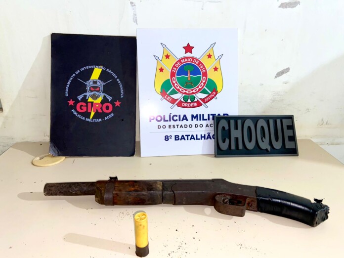 Uma denúncia anônima levou os militares a um endereço, onde segundo informações, um jovem estaria manuseando uma arma de fogo. As equipes conseguiram localizar e apreender o armamento, uma espingarda calibre 20. O adolescente recebeu voz de apreensão e foi encaminhado à delegacia.