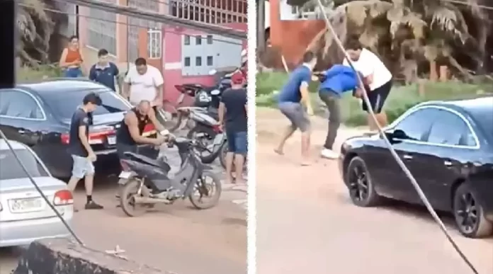 Vários homens correram atrás de Dejaimisone, conseguiram derrubá-lo da moto, passaram a espancá-lo e o amarraram.