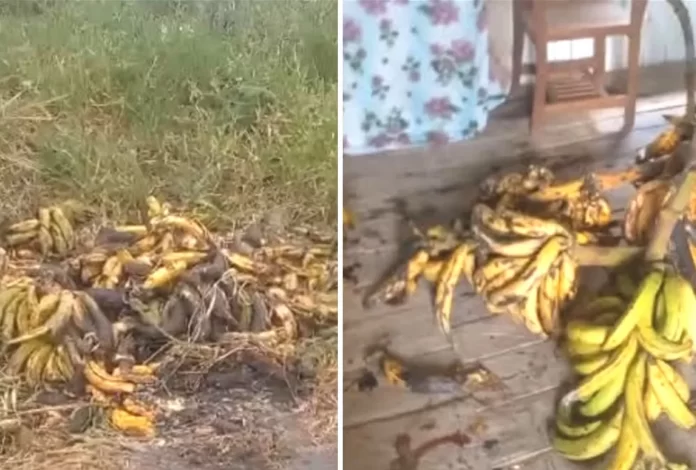 Um vídeo divulgado por um morador da zona rural de Tarauacá, interior do Acre, mostra cachos de banana-comprida estragando, supostamente, por falta de condições para escoamento da produção em dois ramais do município.