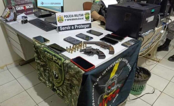 Ainda durante as buscas foi localizada duas armas de fogo, 10 aparelhos possivelmente provenientes de roubos, além de munições. Os três que informaram pertencer uma organização criminosa que atua na fronteira foram encaminhados a delegacia de Brasileia