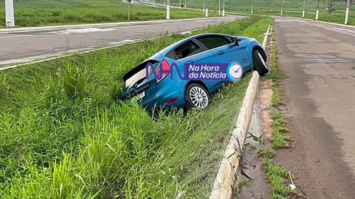 Um carro perdeu o controle nesta sexta-feira (13) e caiu em uma valeta na Rua 26 de junho, no residencial Bom Sucesso, na região da Baixada da Sobral, em Rio Branco.