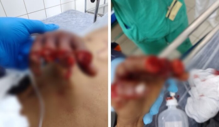 Um suposto ladrão, não identificado teve a maioria dos dedos da mãos decepados no ‘tribunal do crime’, no bairro Jacaraípe, município de Serra, Espírito Santo.