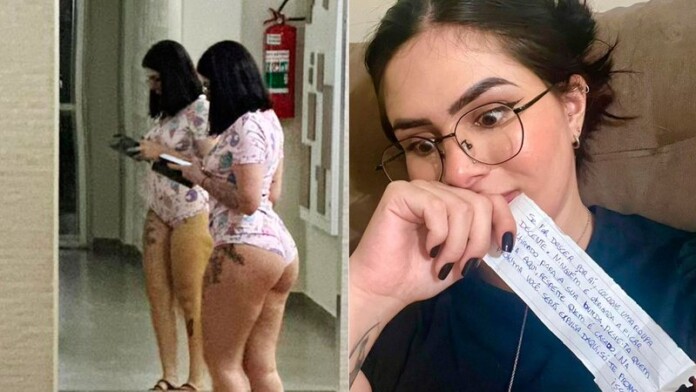 A influencer +18 Lary Cubas expôs nas redes sociais o bilhete de uma vizinha pedindo para que ela deixasse de circular com roupas curtas pelo prédio.